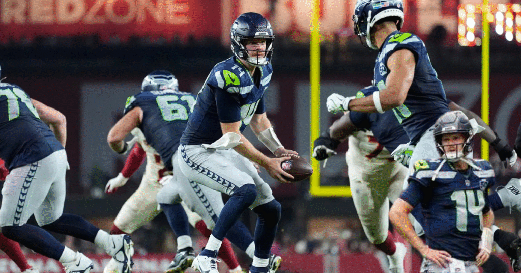 Seattle’s early momentum came from a pair of first-quarter touchdowns. Running back Zach Charbonnet opened the scoring with a 1-yard rushing touchdown, followed by quarterback Sam Darnold connecting with Jaxon Smith-Njigba on an 11-yard strike to make it 14–0.
